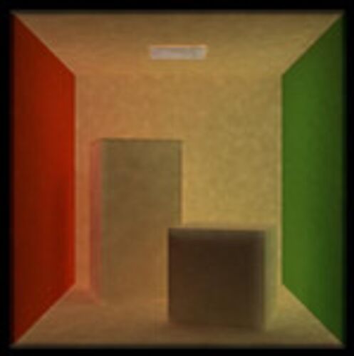 I tried a different approach, the photon mapping. This is the first shot using the current ad-hoc code. The result could only have the ambient component though, I'm not sure what's been done there :-) But I'd like to appreciate this image …